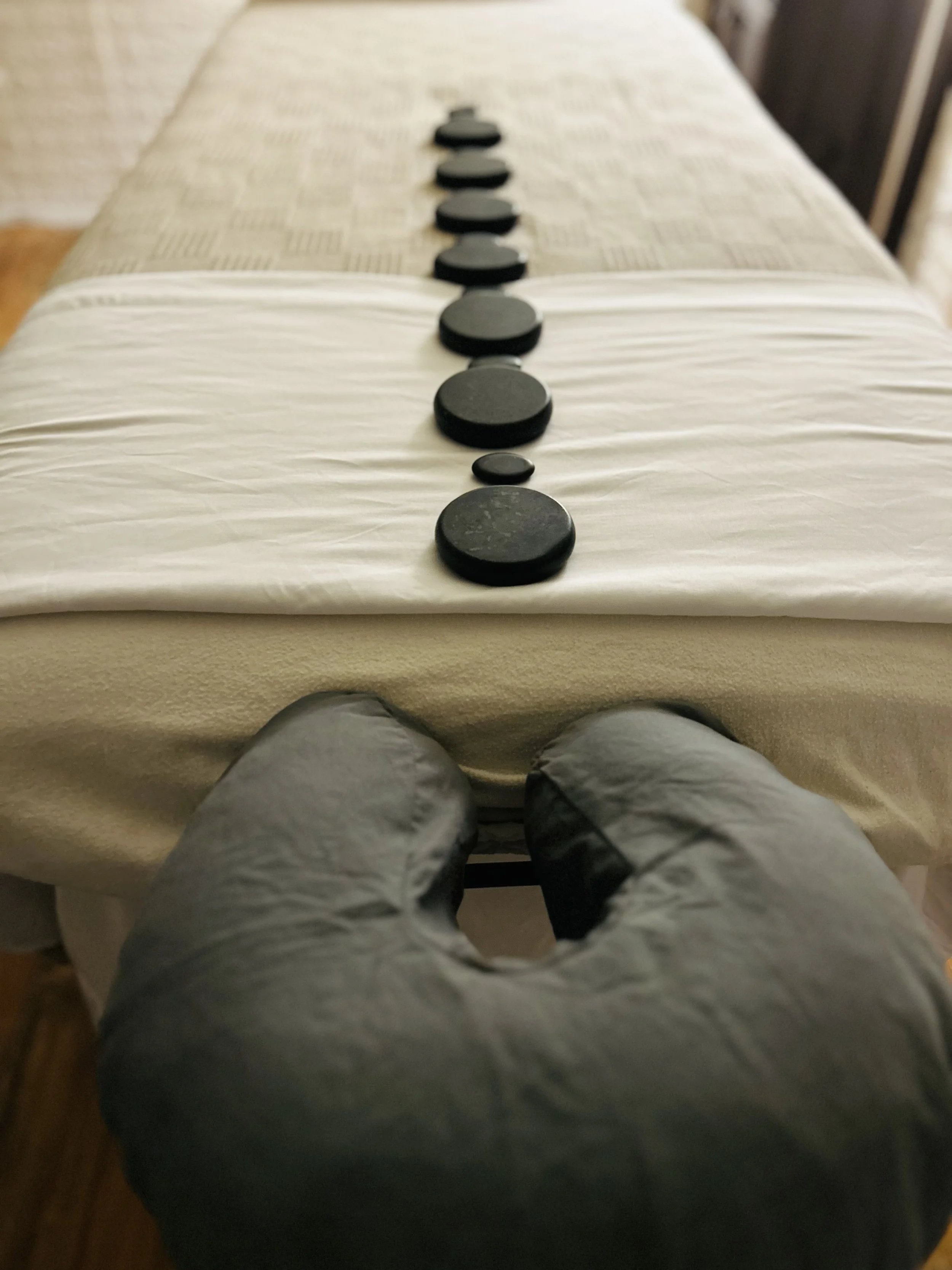 Hot stone massage is a type of massage therapy that involves the use of smooth, heated stones. The therapist places the stones on specific points on your body and may also hold the stones while giving the massage. The localized heat and weight of the stones warm and relax muscles, allowing the therapist to apply deeper pressure to those areas without causing discomfort. It can help to relieve muscle tension and pain, reduce stress and anxiety, and promote relaxation.